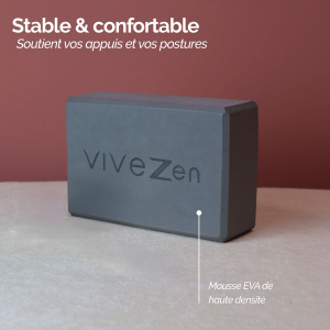 [ MOUSSE HAUTE DENSITE ] La mousse utilisée pour la fabrication de la brique est une mousse EVA de haute densité. Sans substances nocives, la brique en mousse EVA Vivezen est d'excellente qualité. Les angles sont arrondis pour un plus grand confort.