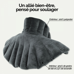 Pratique et simple, il se réchauffe en quelques minutes au micro-ondes et reste chaud pendant près de 45 minutes. Sa forme spécialement étudiée s'adapte aux épaules et au cou, garantissant un maintien parfait sans effort. Il vous suffit de le poser, et il fait le reste.