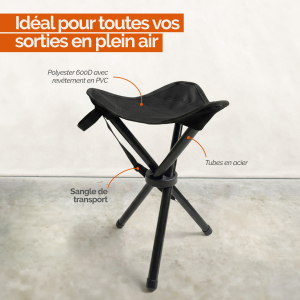 Son siège triangulaire de 26 cm de chaque côté, conçu en polyester 600D avec revêtement PVC, offre une assise robuste, stable et résistante à l’humidité. Ce textile technique garantit une excellente tenue dans le temps, même en conditions extérieures.