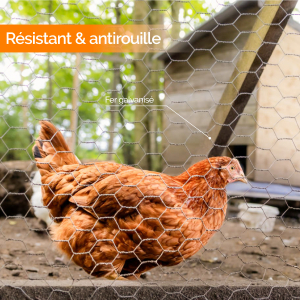 🌿 USAGES MULTIPLES & INSTALLATION FACILE Très polyvalent, il est parfaitement adapté à la construction de volières, poulaillers et clapiers, mais aussi à une utilisation comme support pour les plantes grimpantes dans les jardins et potagers. Facile à manipuler et à installer, il offre une solution pratique et durable pour de nombreux usages. Le grillage triple torsion à maille en losange constitue ainsi un choix fiable et fonctionnel pour ceux qui recherchent une clôture souple, efficace et esthétique pour leurs aménagements extérieurs.