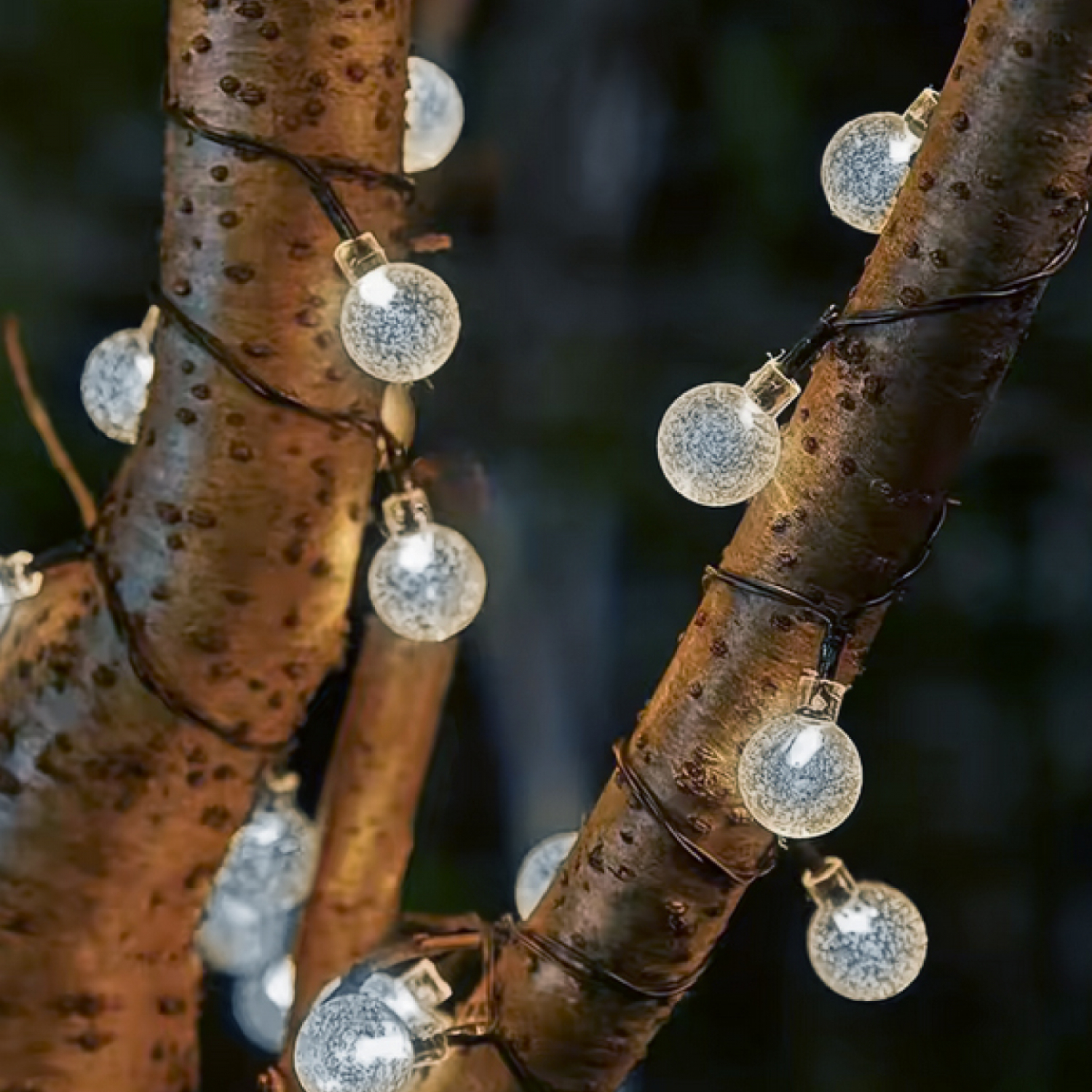 🌞ÉCLAIRAGE SOLAIRE & AUTONOME Illuminez vos soirées et vos extérieurs avec la guirlande solaire LED, un éclairage décoratif pratique et écologique. 100 % solaire et autonome, elle se recharge le jour grâce à son panneau solaire de 7 x 7 cm et s'allume automatiquement à la tombée de la nuit pour une durée de 8 à 12 heures, sans pile ni branchement électrique. Chaque ampoule mesure 2,2 cm de diamètre avec un effet bulles à l'intérieur, apportant une touche élégante et lumineuse à votre extérieur.