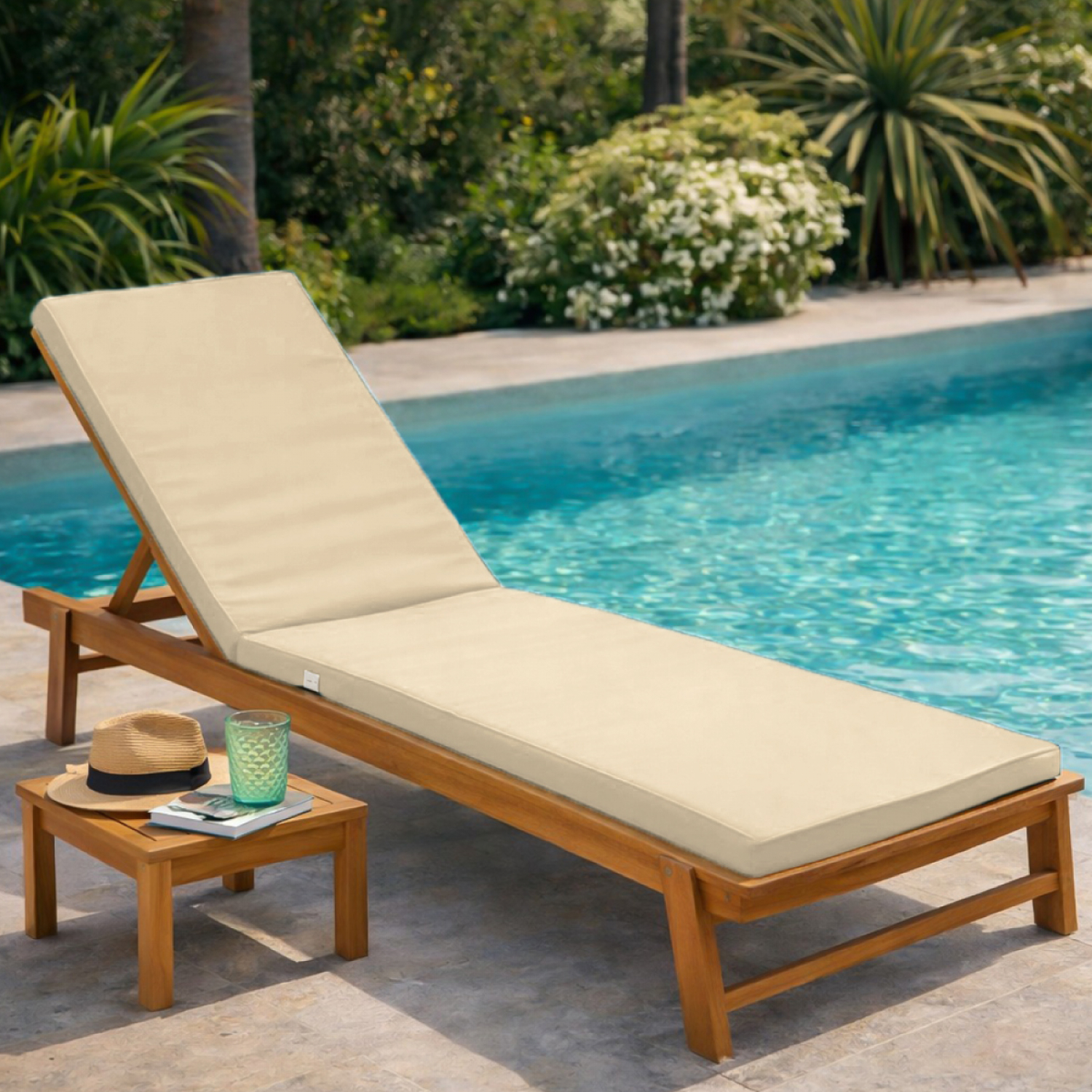 Coussin pour bain de soleil déhoussable - 183 x 60 cm - Beige