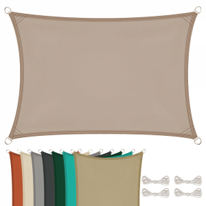 🎭 ESTHÉTIQUE & POLYVALENCE Sa forme rectangulaire permet de couvrir une zone généreuse et de structurer visuellement l'espace, tout en apportant une touche moderne à votre extérieur. Pour une installation simple et sécurisée, le voile d'ombrage est fourni avec quatre cordes en nylon de 1,50 m et 5 mm de diamètre, garantissant une tension stable et une fixation fiable. Léger mais solide, il se manipule facilement et peut être retiré ou repositionné selon vos besoins.