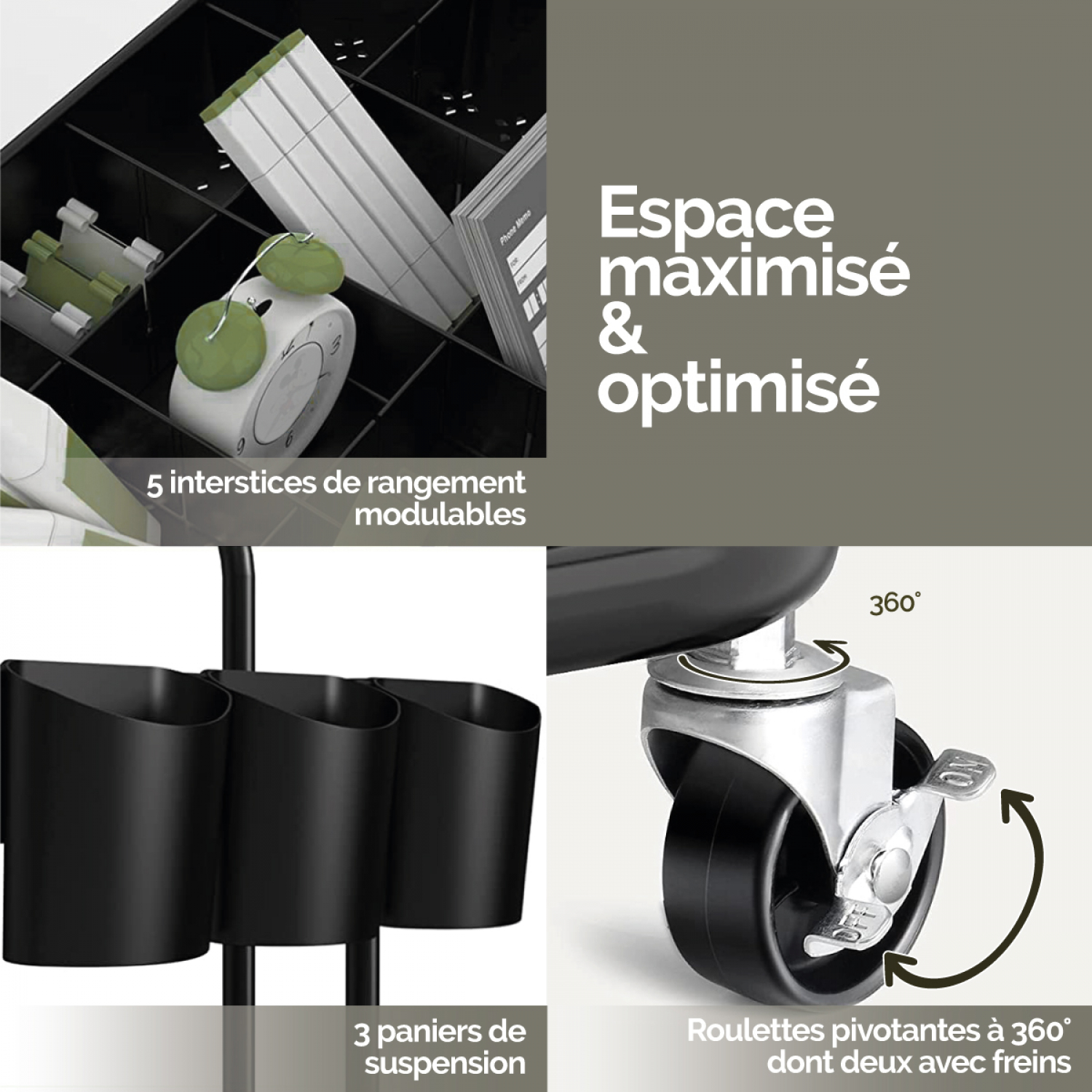 Polyvalent, robuste et élégant, le chariot de rangement s’adapte à toutes les pièces de la maison : salle de bain, cuisine, bureau, buanderie ou encore atelier.