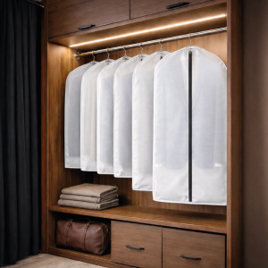 Fabriquées en PEVA transparent associé à un tissu non tissé opaque, ces housses offrent un parfait équilibre entre légèreté, durabilité et protection. Leur matériau semi-translucide permet de repérer facilement vos vêtements sans avoir à ouvrir la housse, tout en préservant une esthétique discrète et soignée dans votre dressing.