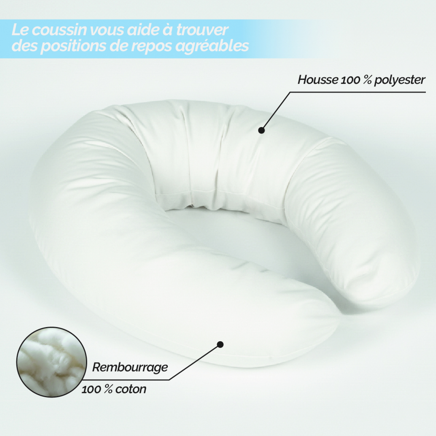 Son rembourrage 100 % coton garantit une sensation de douceur et de confort, parfaite pour améliorer votre qualité de sommeil pendant la grossesse et vous aider à trouver des positions de repos agréables.