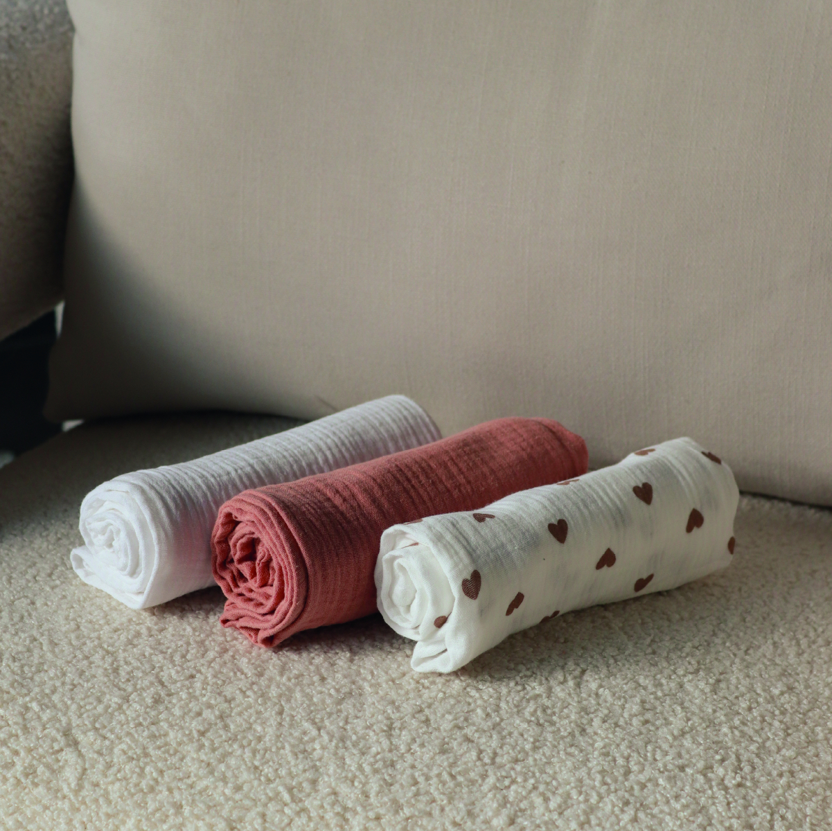 Avec ce lot de 3 langes en mousseline 30 x 30 cm, vous êtes sûrs d'avoir toujours un linge propre et doux à disposition, pour prendre soin de votre bébé avec sérénité.